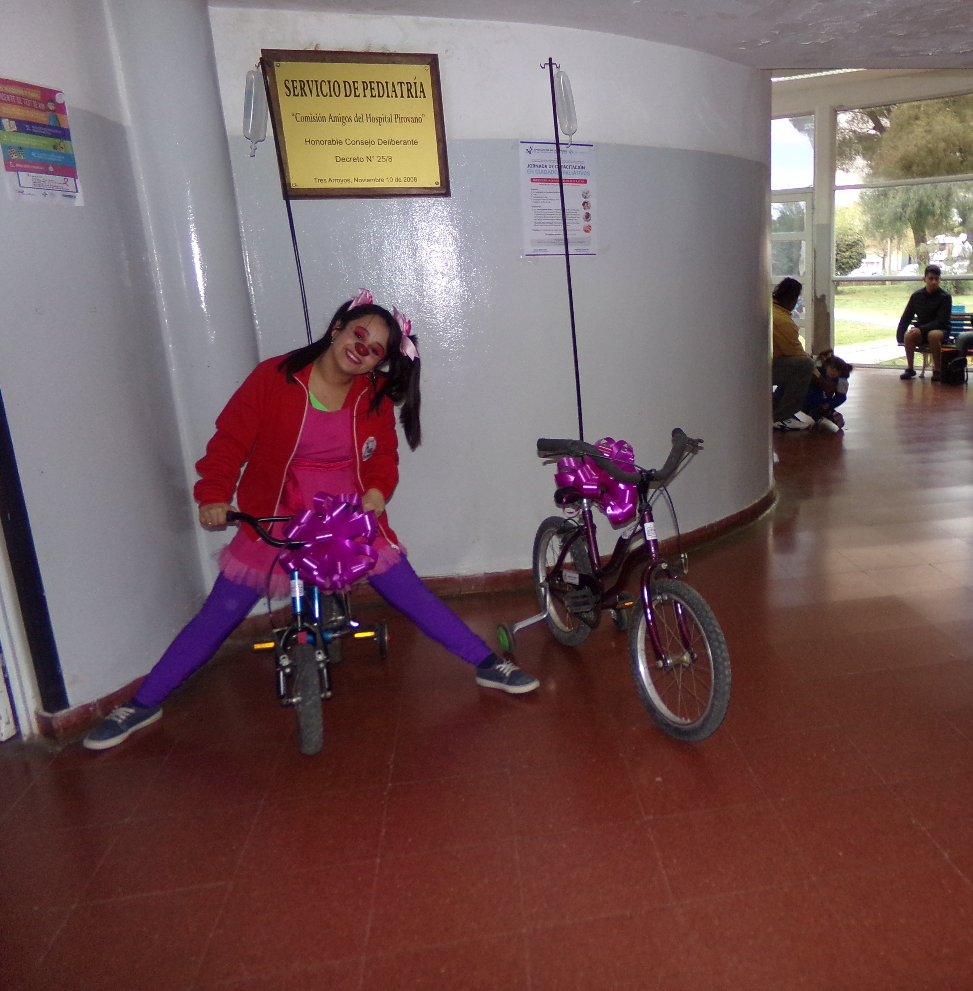 En la mañana de hoy integrantes de la Compañia habia Una Vez, que realizan las payaguardias en nuestro hospital hicieron entrega de bicicletas portasueros.