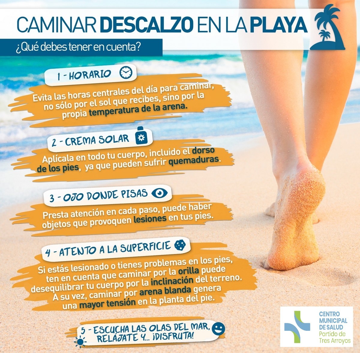 -Quemaduras por exposición, en el uso de protector solar se recomienda incluir los pies en su totalidad, también el dorso, ya que pueden sufrir quemaduras, que sumadas a las rozaduras al caminar, pueden ser dolorosas.