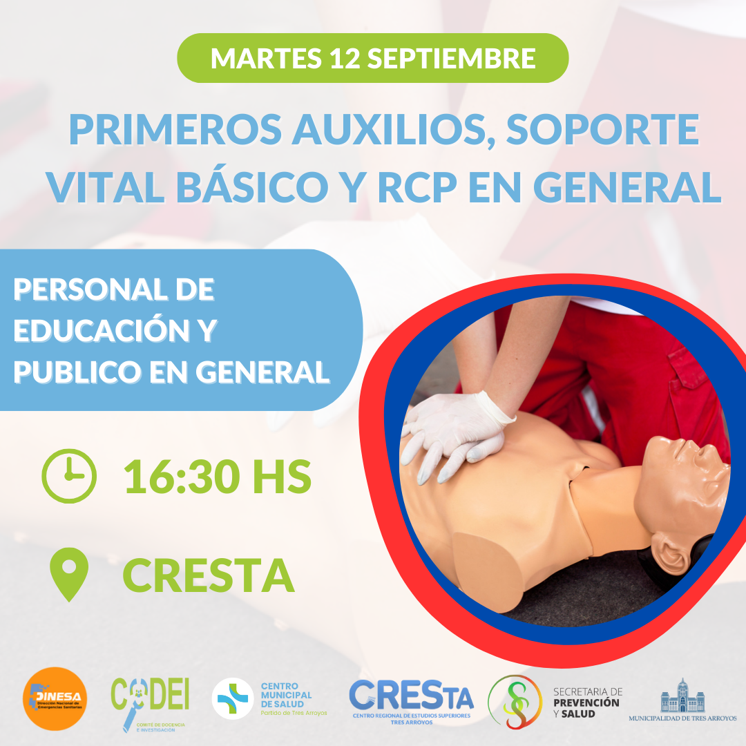 Organizadas por la Coordinadora del Comité de Docencia e Investigación del Centro Municipal de Salud, Cresta y en conjunto con múltiples áreas municipales y del Centro de salud se desarrollaran en Tres Arroyos distintas capacitaciones desde el martes 12 de Setiembre y hasta el viernes 15 de setiembre inclusive.