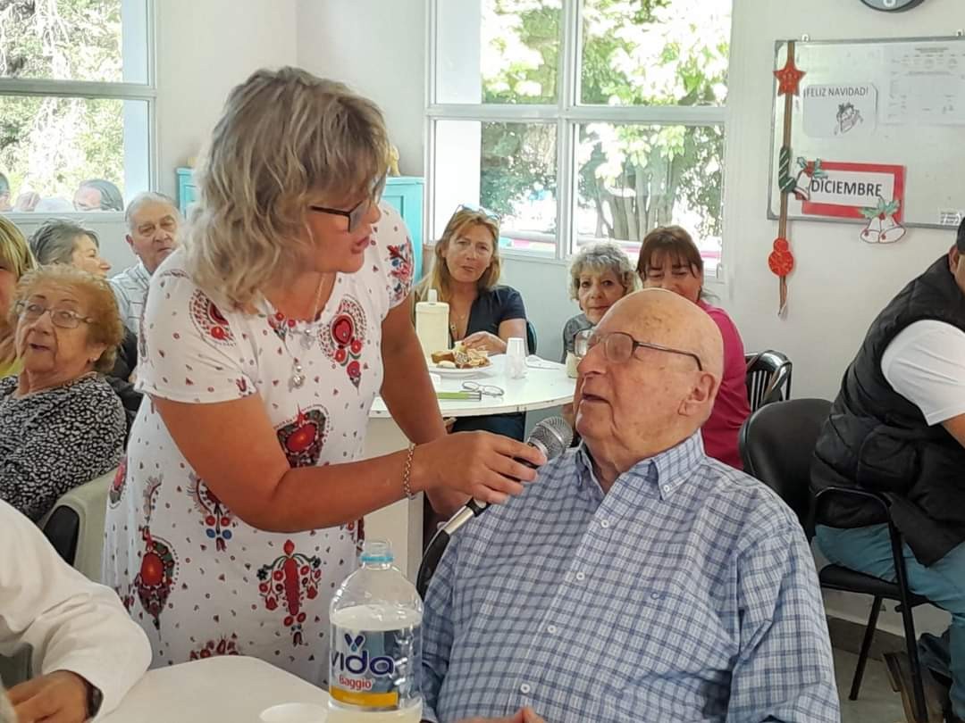 El equipo interdisciplinario: Vanesa, Noelia, Alejandra, Ana y Wanda agradecen a todo el equipo de salud de la residencia, a las damas de comisión del Geriátrico Municipal, a la asistencia técnica de canto de Jorgelina Ouwerkerk, a La Perseverancia Seguros, y a la familias de los residentes por el apoyo y acompañamiento para realizar este festejo tan anhelado durante el año.