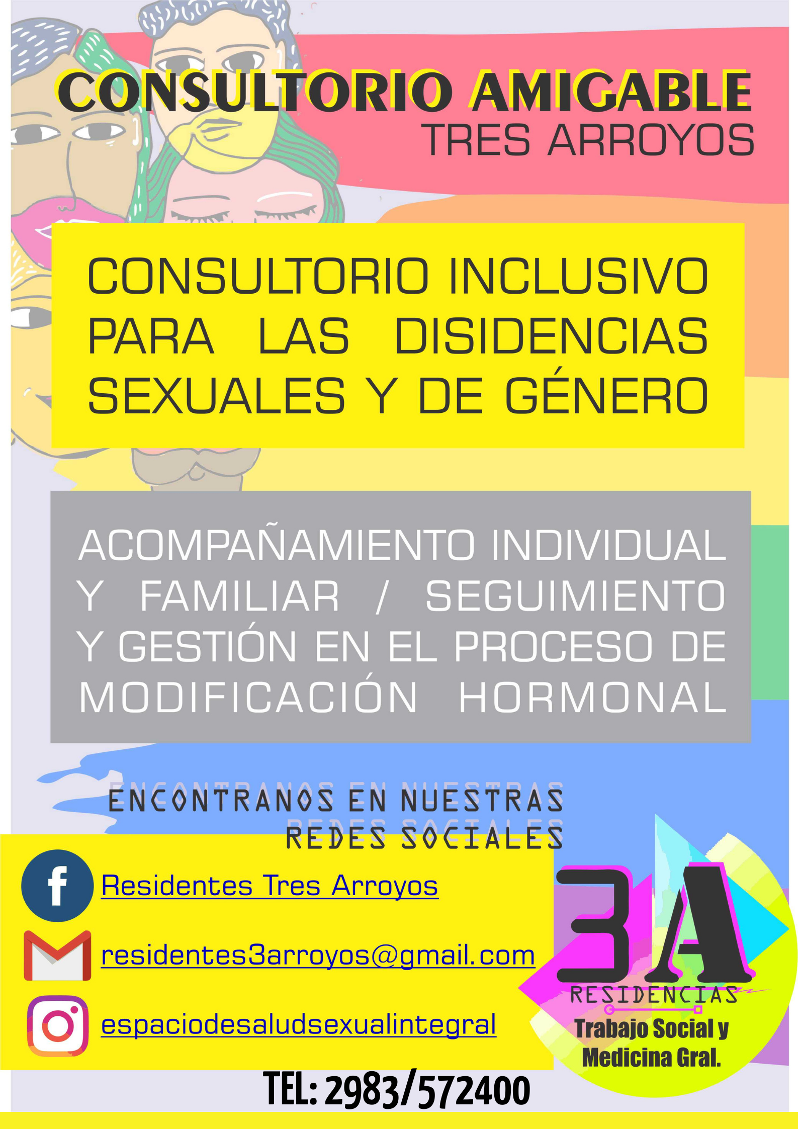 El Consultorio Amigable es un espacio destinado a favorecer el acceso de la comunidad trans y/o LGBTIQ+ al sistema de salud que funciona desde mediados del 2019 en la ciudad de Tres Arroyos, promoviendo un abordaje integral de la salud desde un enfoque despatologizador, orientado al acompañamiento tanto individual como familiar, reconocimiento y fortalecimiento de la autonomía de las personas.