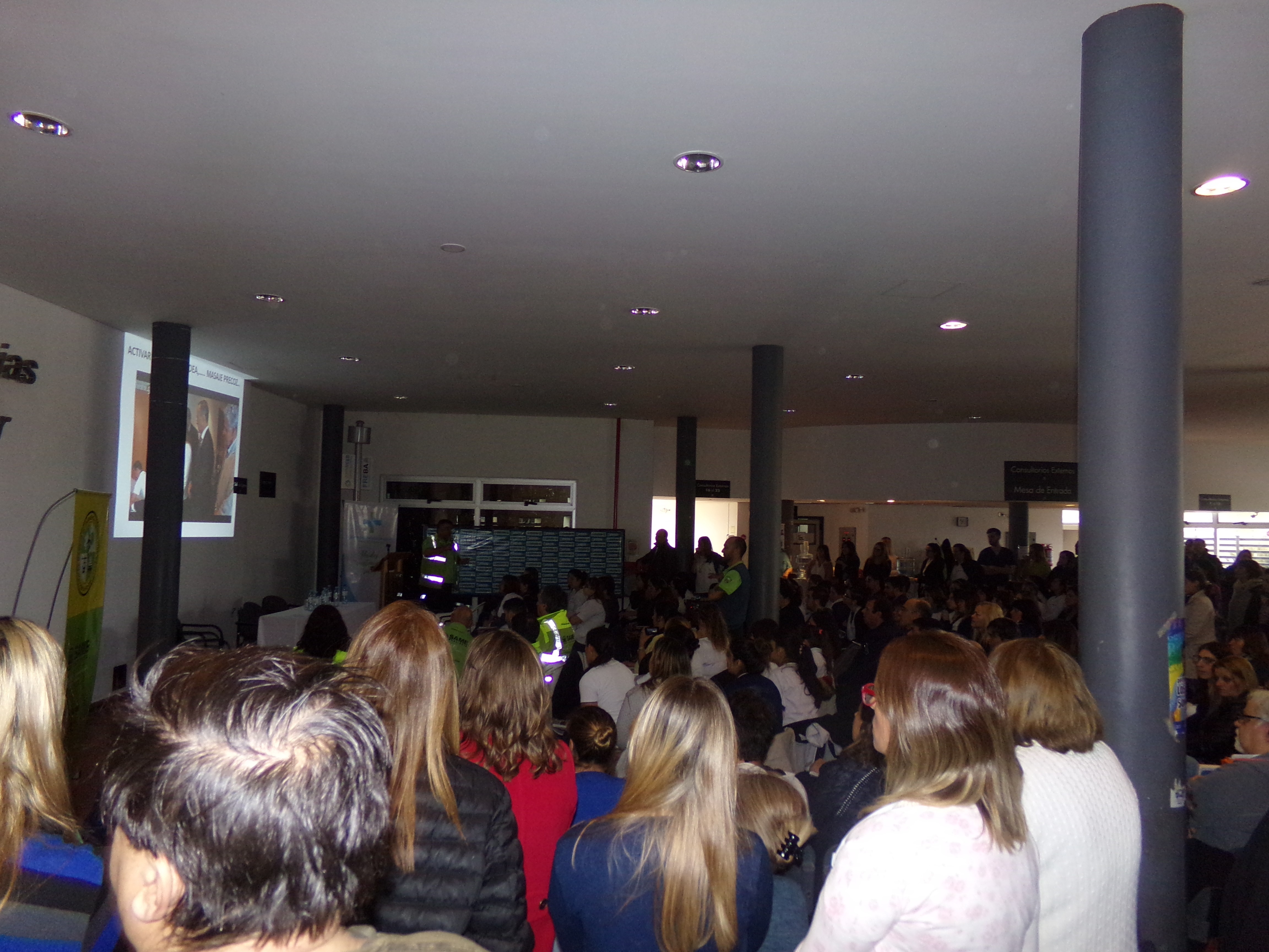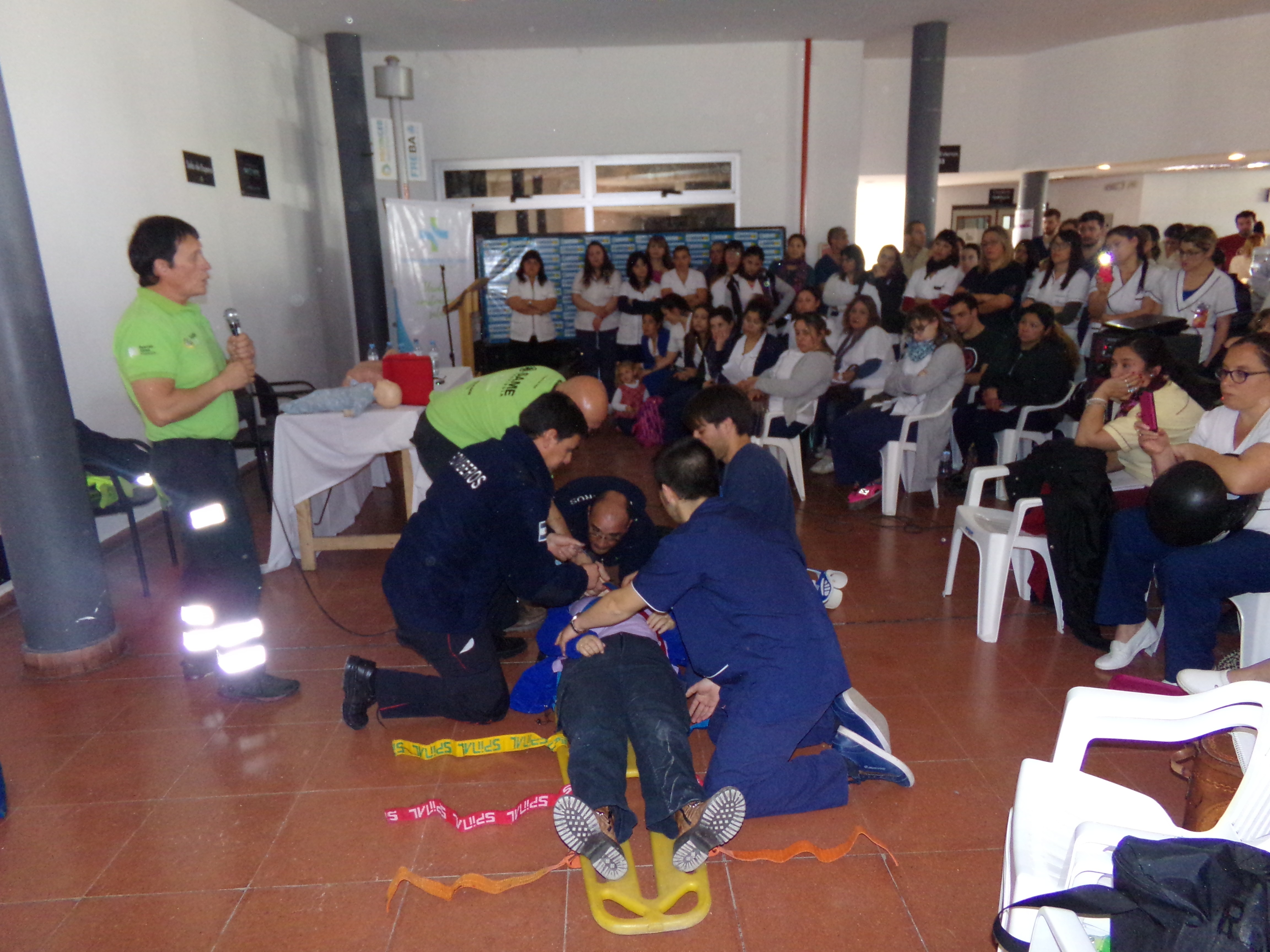 Durante todo el dia, se realiza en el Hall Central del Hospital Pirovano una capacitación intensiva para todo el personal de salud publica del distrito. 10 capacitadores realiza abordaje teórico practico de conducción defensiva, manejo inicial del trauma, aspecto psicosociales de la emergencia y principios de la comunicación en la emergencia.