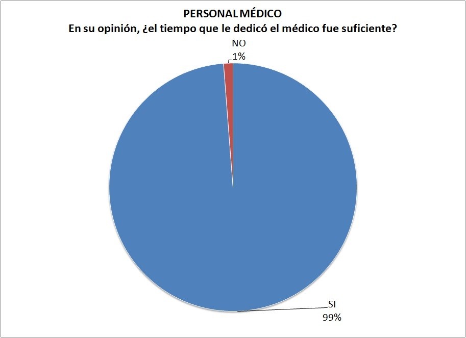 El 99% considero que el tiempo que el médico dedico a su atención fue adecuado a su situación.