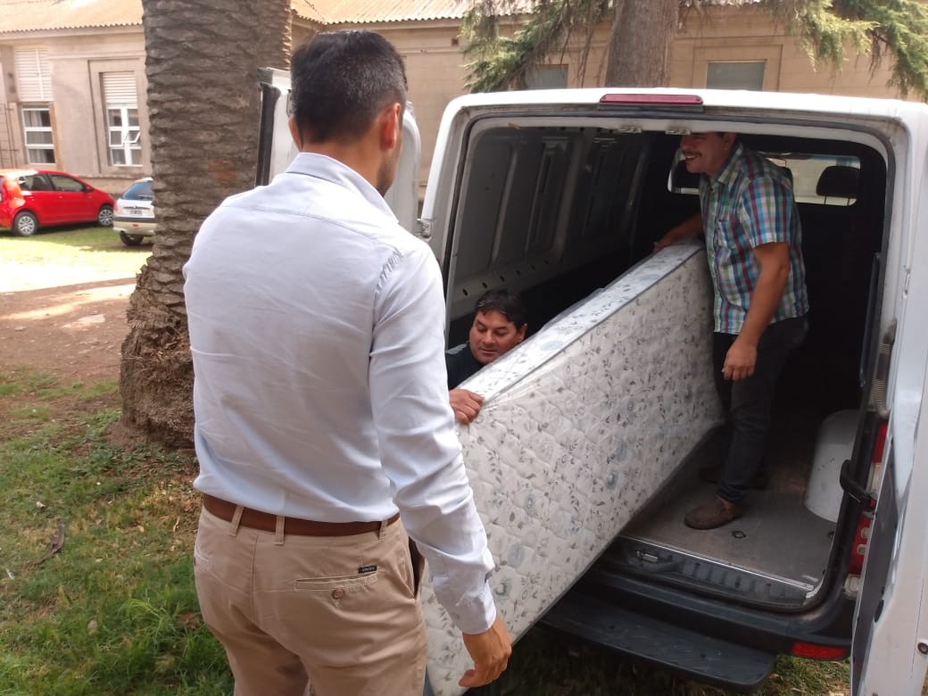 En la tarde de hoy los integrantes del comité de contingencia de la Municipalidad de Tres Arroyos, la licenciada Vanesa Borda, la doctora Claudia Cittadino, el doctor Gabriel Guerra y el licenciado Diego Rodríguez, Director Administrativo recibieron en el Centro Municipal de Salud la donación de colchones por parte de Juan Montesinos propietario de la firma local Montesino Muebles.
