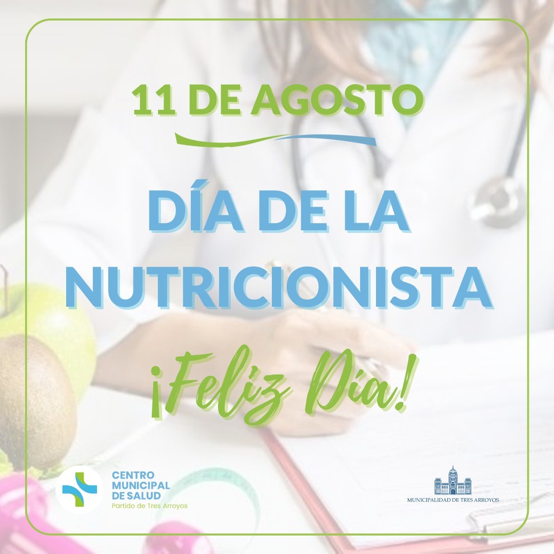 En reconocimiento a esta profesión indispensable ya la excelencia en la labor que realizan, las autoridades de salud del Distrito de Tres Arroyos, saluda y agradece a las nutricionistas del Distrito en su Día. ¡¡¡Feliz día de las Nutricionistas!!!!.
