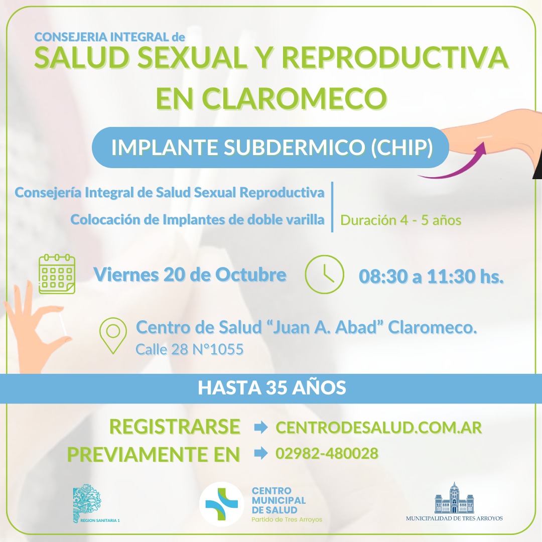 Este viernes 20 de Octubre de 8.30 a 11.30 hs en el Centro de Salud Juan Abad