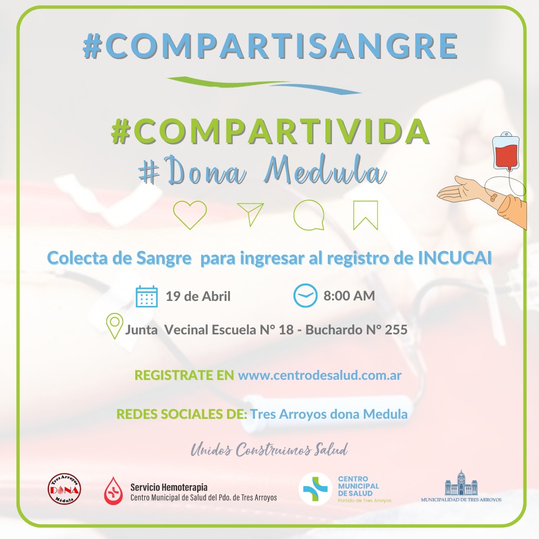 Junto con Tres Arroyos dona Medula. Regístrate AQUÍ. Este 19 de Abril. Te esperamos