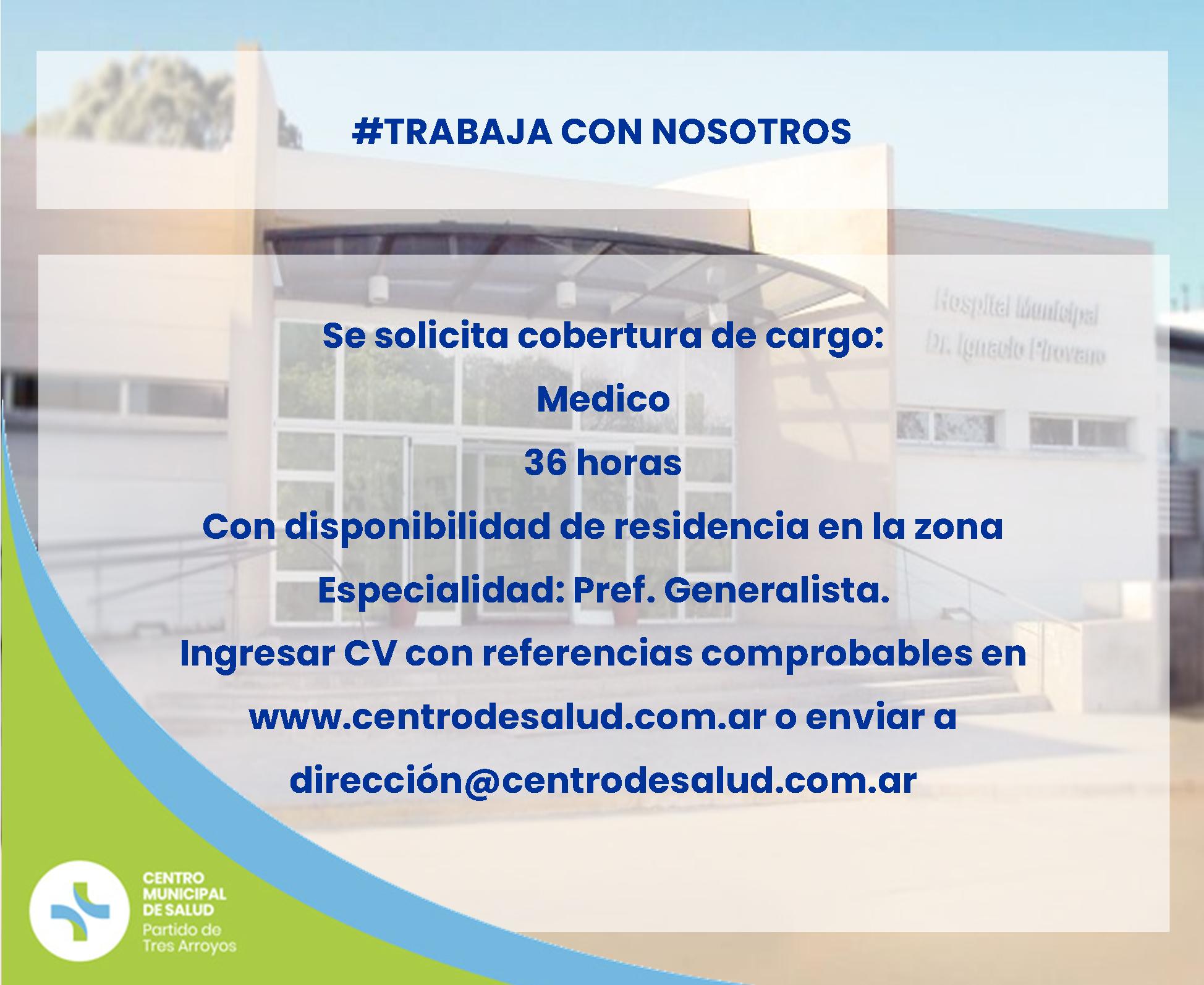De 36 horas- estabilidad laboral - disponibilidad de residencia en la zona