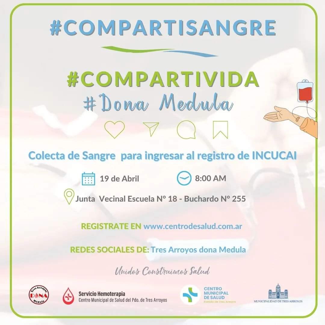 #compartísangre #compartívida #donamedula ❣️Nueva colecta 💻Sumaté. ‼️Vos sos parte del cambio. Te esperamos‼️ @municipalidadtresarroyos @tsasdonamedula #unidosconstruimossalud