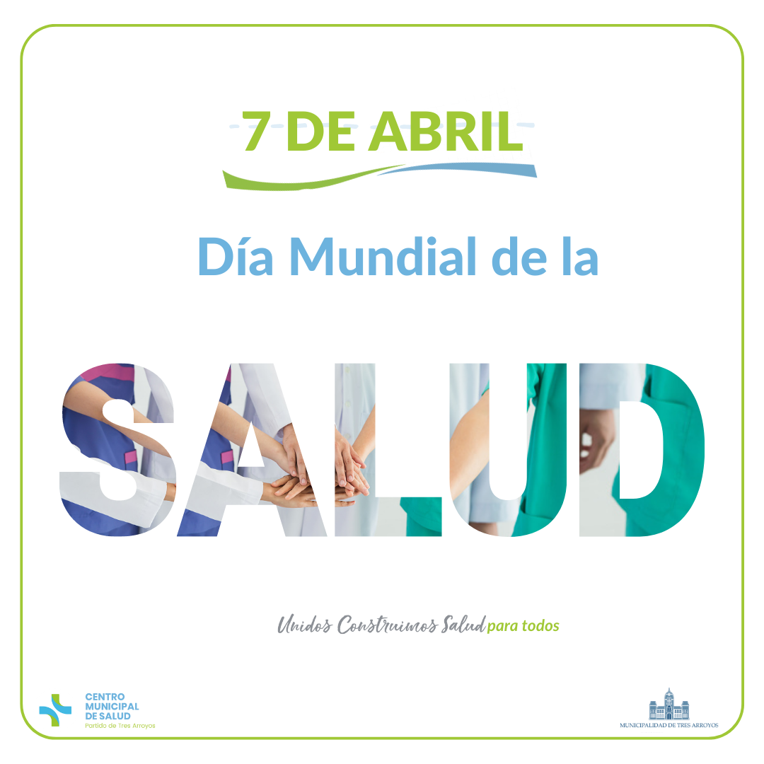 La OMS celebra el dia de su fundación como el Día Mundial de la Salud, este año con el lema de marcar el camino hacia el logro de la Salud para todos. En nuestro hospital , realizamos 165 mil consultas anuales, más de 81 mil consultas por guardia y 7000 internaciones en 11 servicios. En 2 años 15 obras de infraestructura. 7 caps remodelados. Y estamos a punto de cumplir un sueño, finalizar el Servicio de Oncologia de Tres Arroyos.