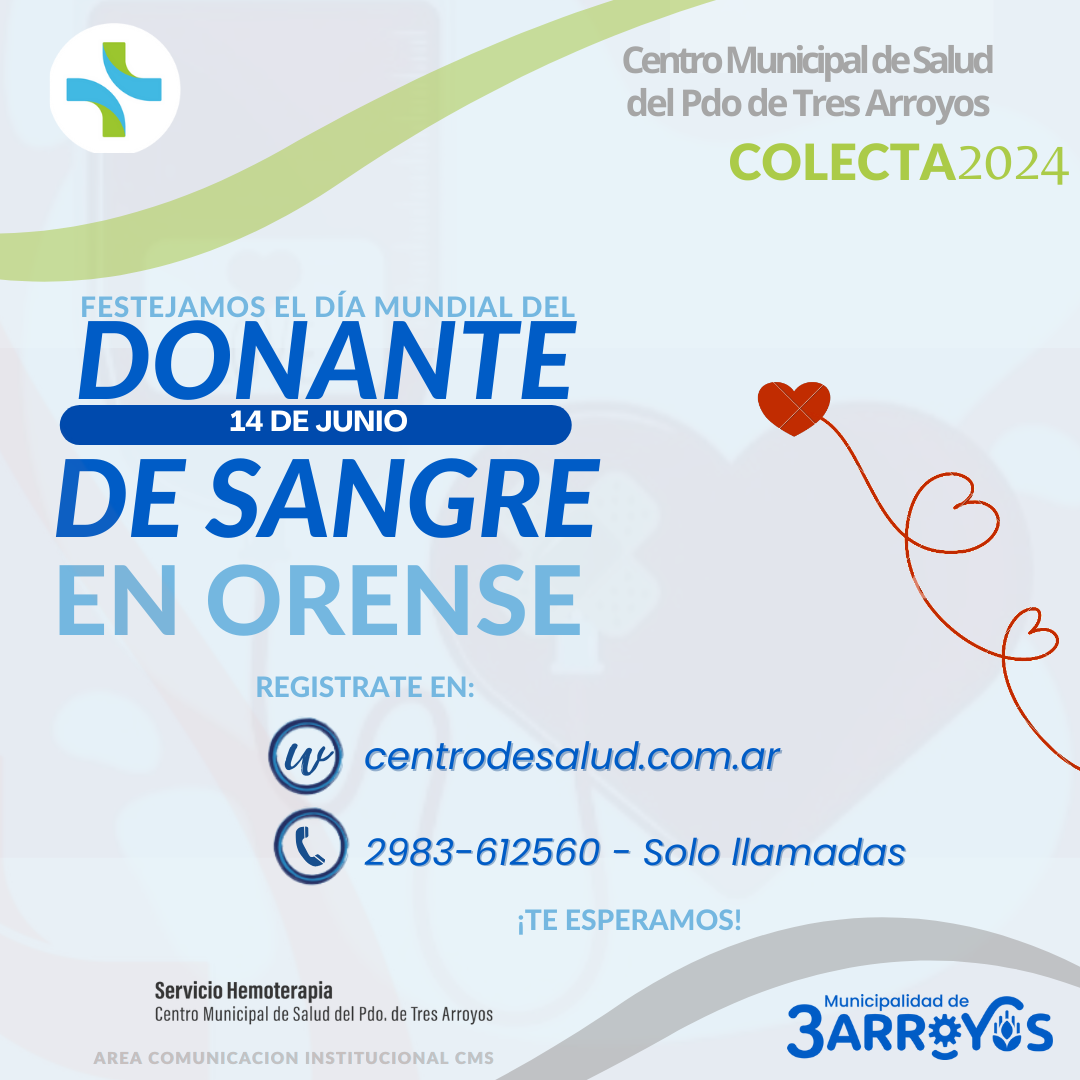 El 14 de junio de cada año se celebra el Día Mundial del Donante de Sangre para agradecer a los donantes voluntarios y concientizar sobre la necesidad de realizar donaciones regulares con el fin de garantizar la calidad, seguridad y disponibilidad de sangre y sus derivados.