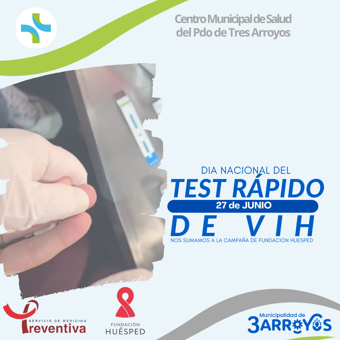 ES FÁCIL Y GRATUITO: Hacete el test rápido de VIH Hoy fortalecemos la difusión y te recordamos que en Tres arroyos contamos con: ✅️ Centros de testeo rápido en los consultorios N° 11 y 12 del Centro de Salud de lunes a jueves de 8 a 10 hs. ✅️ CAPS 25 DE MAYO, ubicado en 25 de mayo y libertad consultando días y horarios. Búscanos y hacete el TEST